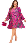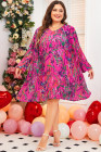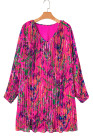 Plus Size Rose Abstract Floral Print Pleated Loose Dress