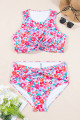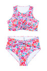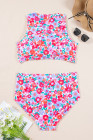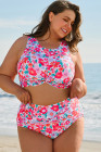 Plus Size Rose Floral Print Twisted High Waist Bikini Set