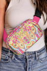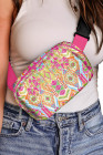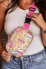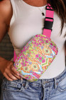 Rose Red Western Print Buckle Wide Belt Chest Bag