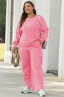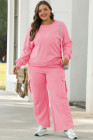 Sachet Pink Solid Color Patchwork Pullover Top and Cargo Pants Set