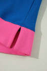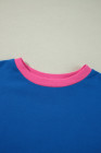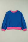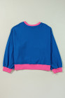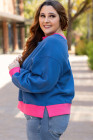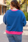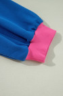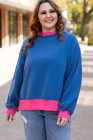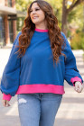 Plus Size Sky Blue Color Block Edge Balloon Sleeve Sweatshirt