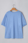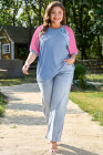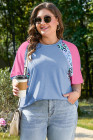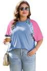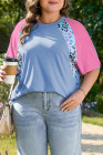 Plus Size Sky Blue Leopard Print Patch Colorblock T Shirt