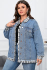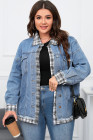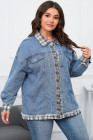 Plus Size Sky Blue Plaid Hem Splicing Denim Jacket