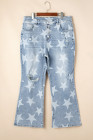 Plus Size Sky Blue Star Printed Multi Buttons Slit Knee Destroyed Jeans