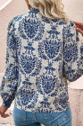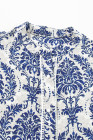 Plus Size Sky Blue Tribal Pattern Print Notch Neck Buttoned Shirt