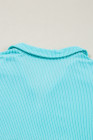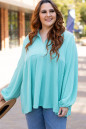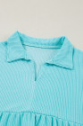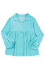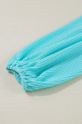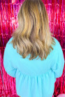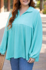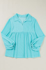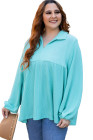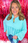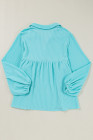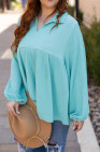 Turquoise Cordrd Balloon Sleeve Collar Plus Babydoll Top