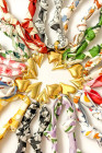 White Floral Print Scarf Knotted Gold Heart Charm Necklace