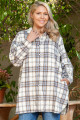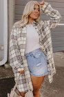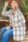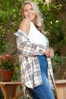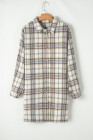 Plus Size White Plaid Print Tunic Shacket with Slits