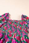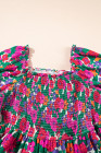 Plus Size White Floral Frilled Square Neck Shirred Long Sleeve Dress