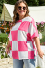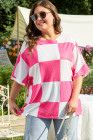 Plus Size White Textured Checkerboard Round Neck T Shirt