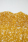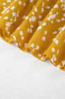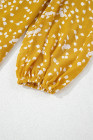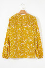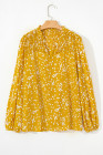 Plus Size Yellow Floral Print Ruched Split Neck Blouse